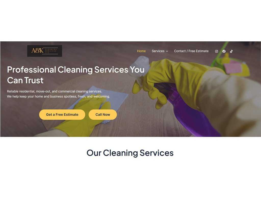 Built a modern, mobile-friendly website to help a local cleaning business present their services clearly and convert visitors into leads.